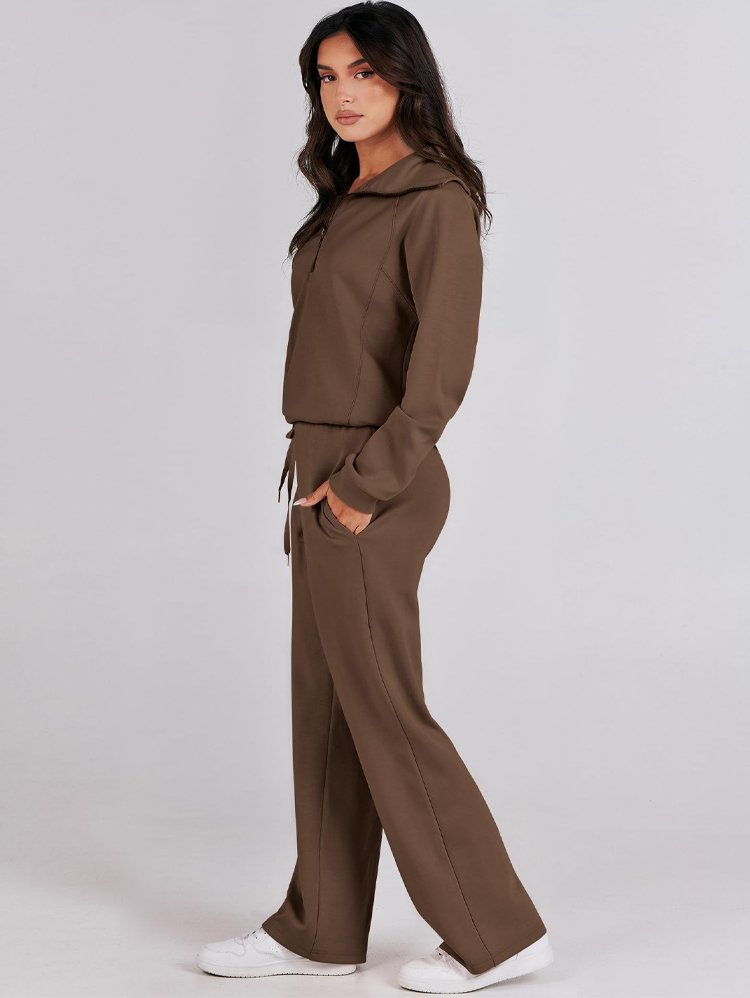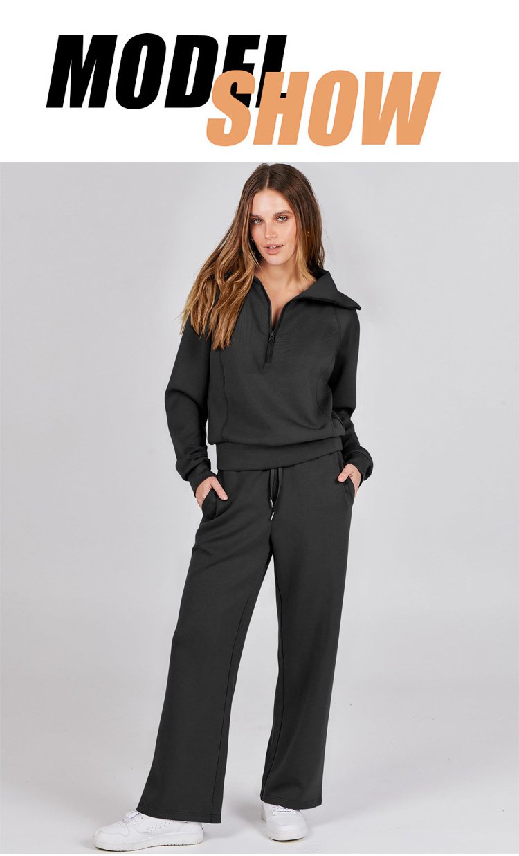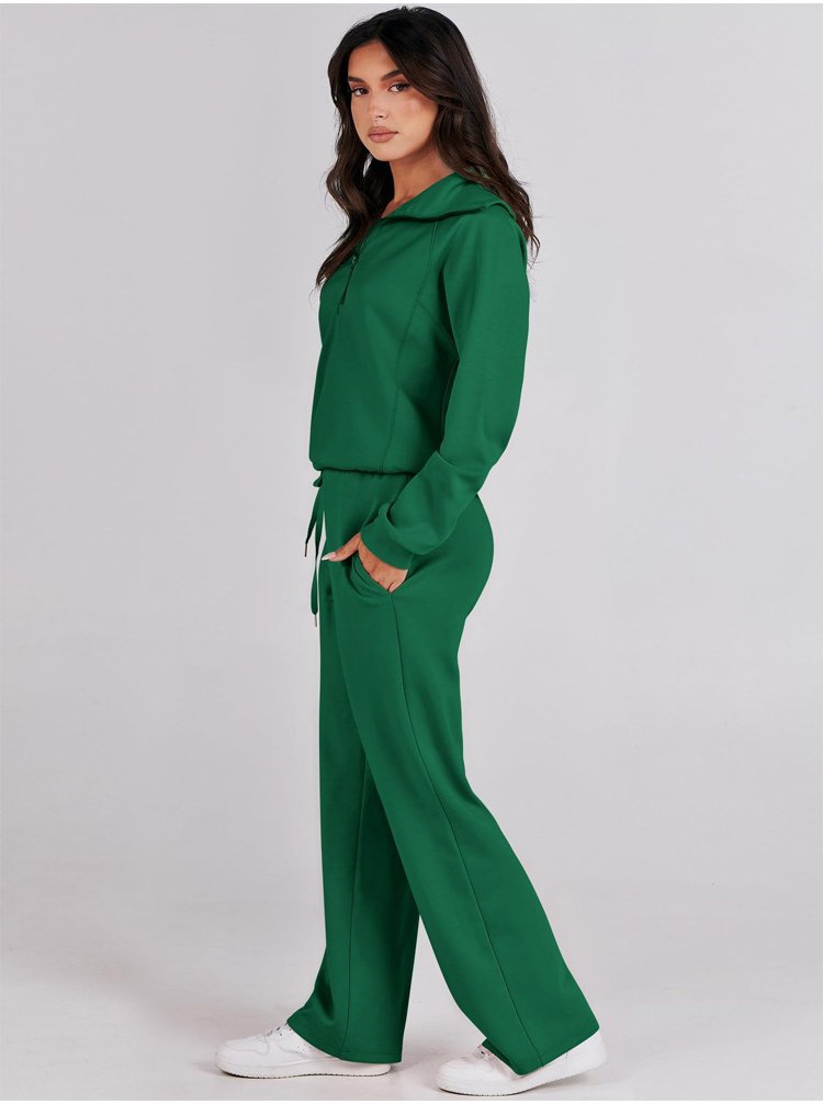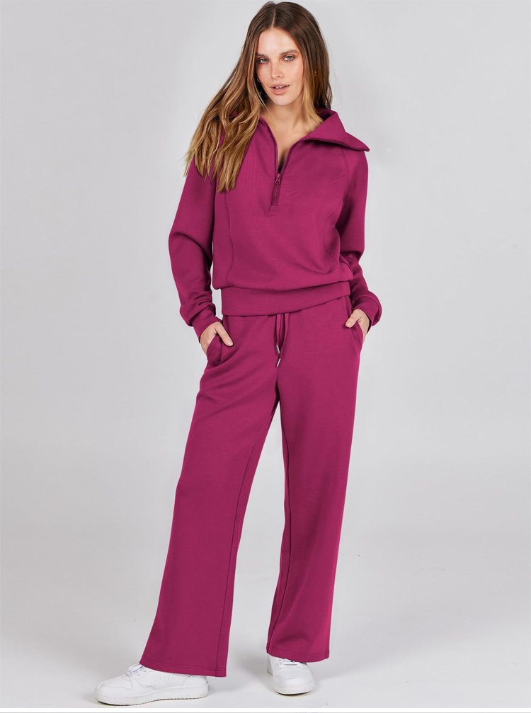 Casual Zipper Long Sleeve Hoodie and Wide Leg Pants Two-Piece Set