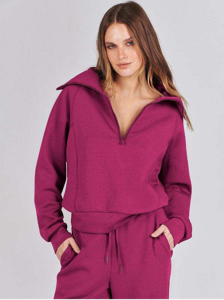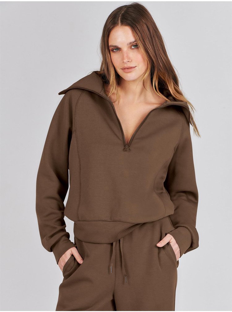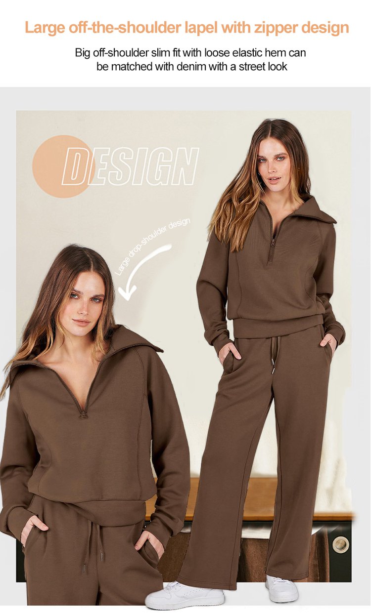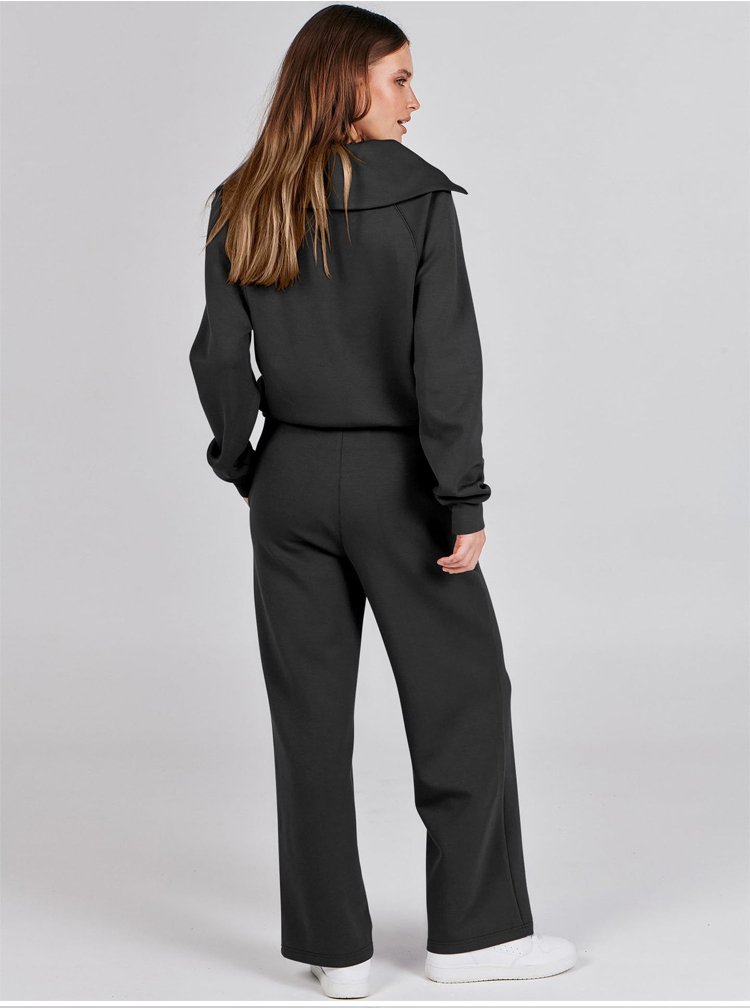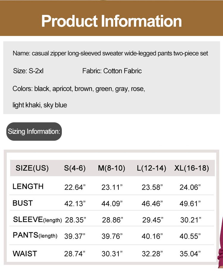 Casual Zipper Long Sleeve Hoodie and Wide Leg Pants Two-Piece Set
